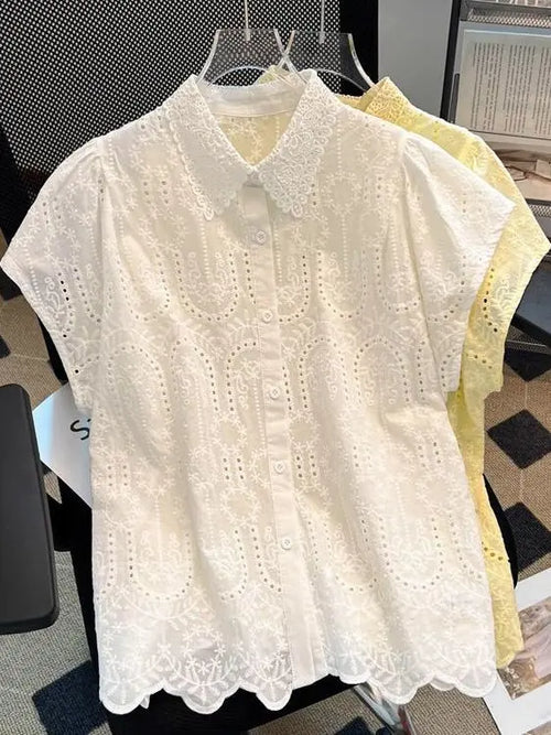 Camisa Encaje Manga Corta Casual -
